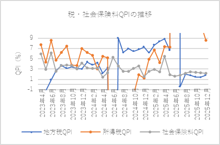 所得税QPIの伸び率は、9月度のピーク以降、11月度(+11.89%)、12月度(+8.63%)と、着実に鈍化している。これは2024年夏の定額減税の影響による前年比での「税負担急増」という特殊要因が収束に向かっていることを示している。